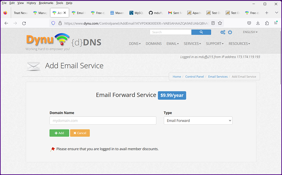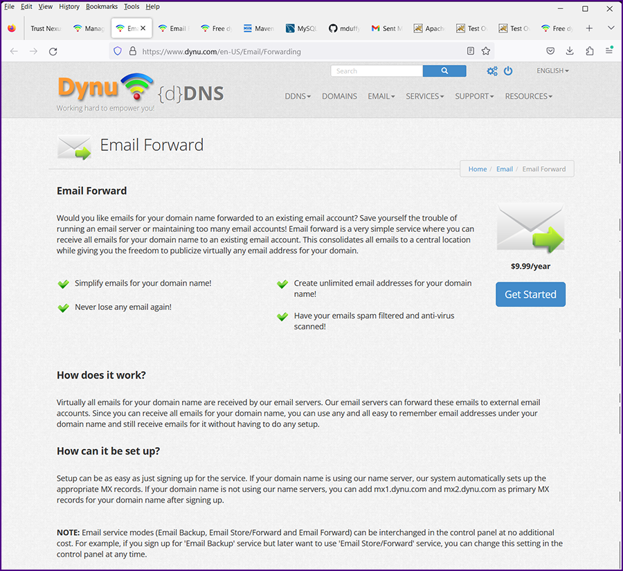 If you need an email address, click on the link in the blue box: https://www.dynu.com/Email/Forwarding