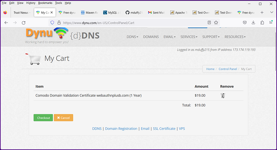 The cryptography is accomplished through digital certificates. In our project we will use a certificate purchased from Dynu for $19.00.