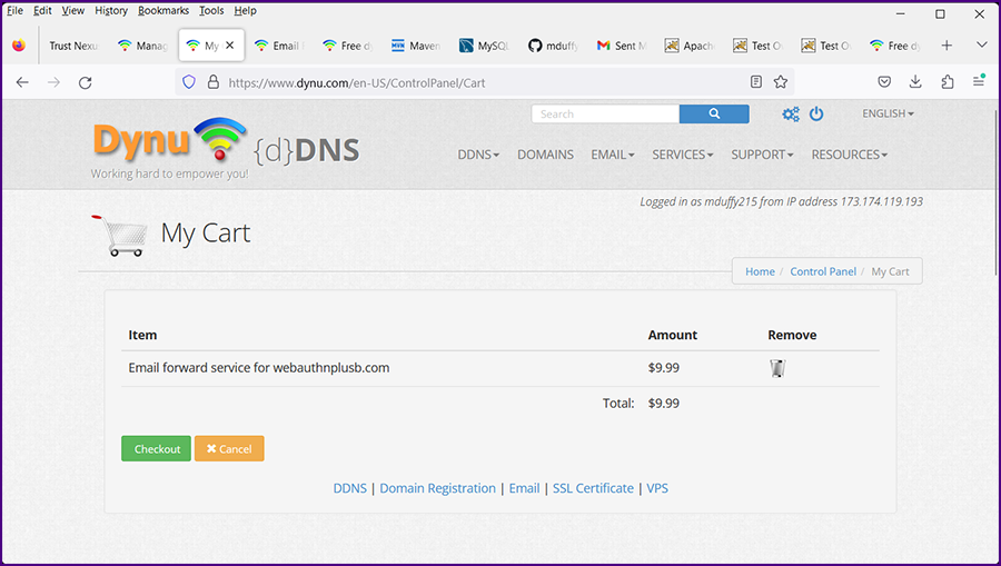 "Checkout." Almost immediately you will receive an email notifying you that your Email Forward service has been activated.