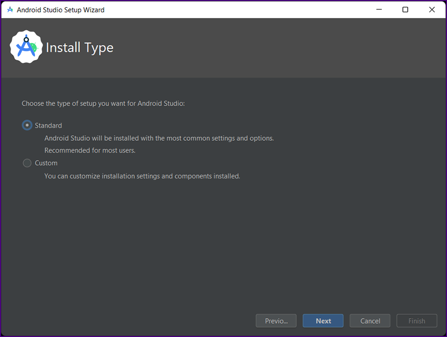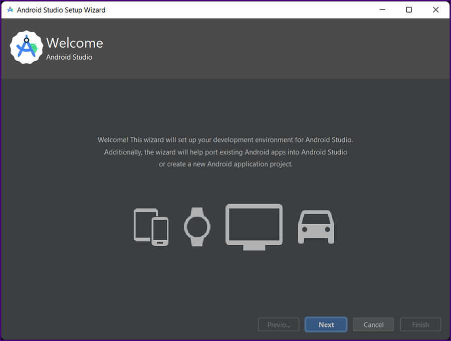 The "Welcome to Android Studio Setup" screen is displayed.