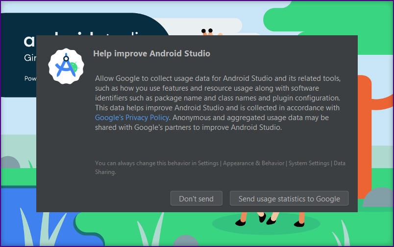 The "Help Improve Android Studio" screen is displayed.