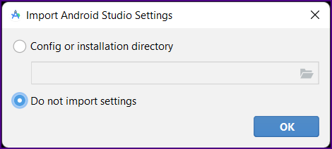 The "Import Android Studio Settings" screen is displayed.